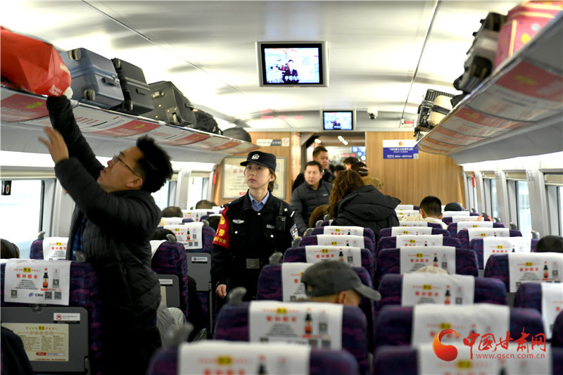 乘警支隊“玫瑰女子乘警組”隊員在列車上開展車廂巡視工作