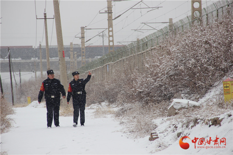 天祝西站派出所民警在護網(wǎng)旁前行,在人跡罕至的高原,他們用日復一日的堅守,守護著列車的飛馳與旅客的歸途