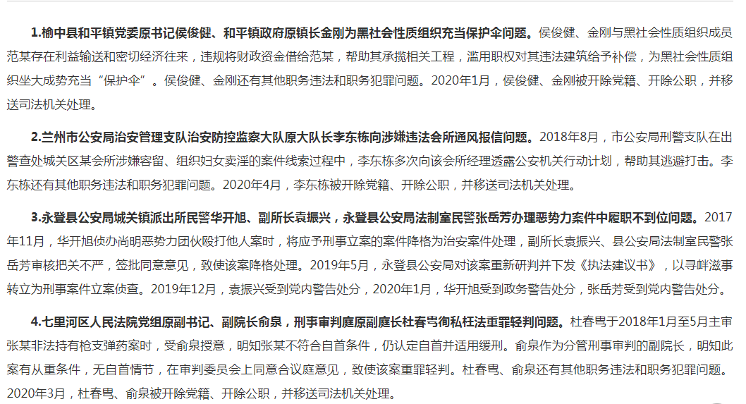 蘭州市紀(jì)委監(jiān)委通報(bào)4起掃黑除惡專項(xiàng)斗爭(zhēng)“懲腐打傘”典型問(wèn)題