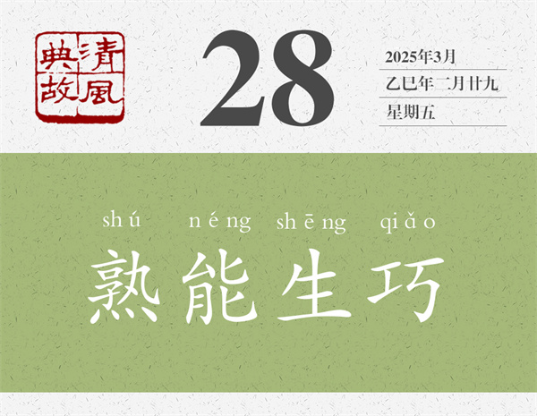 陳堯咨的射術(shù)不是不高,但用“無他,但手熟爾”來評價,給人的感覺是輕飄飄的;賣油翁往葫蘆里倒油的技術(shù)也不是不高,但賣油翁自己也說是“我亦無他,惟手熟爾”。在這個故事后面,歐陽修還說了一句話:“此與莊生所謂解牛、斫輪者何異?”“‌‌解牛”即“庖丁解牛”,“斫輪”即“輪扁斫輪”,前者即典故“游刃有余”之源,后者即典故“得心應(yīng)手”之源。意思是,這些并不神秘,都是“惟手熟爾”。后人即以“熟能生巧”為典,形容實踐多了,自然就能找到竅門,產(chǎn)生出巧妙的辦法,干起事來就能隨心所欲。董必武的詩《次稚天韻》:“會者不難終要學,熟能生巧豈徒詩。”