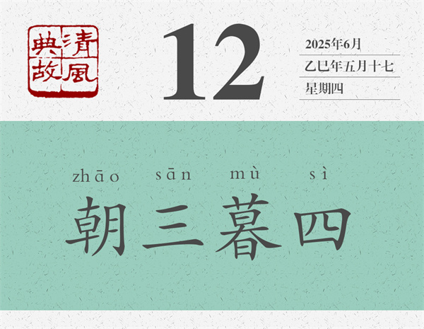 “朝三暮四”也寫作“朝四暮三”,指在不增加成本的基礎上,或者在換湯不換藥的情況下,善于用智謀來說服或駕馭他人。但是,不知從何時起,它們就成了“朝秦暮楚”的代名詞,用來比喻一個人見異思遷、喜新厭舊,或三心二意、反復無常。
