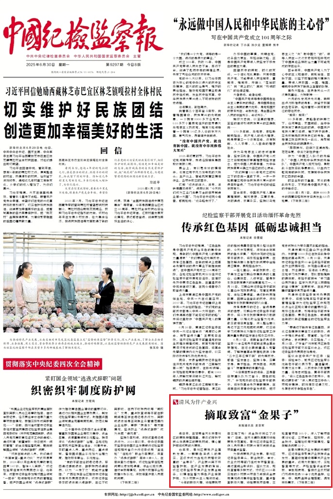 《中國(guó)紀(jì)檢監(jiān)察報(bào)》2025年6月30日 第1版