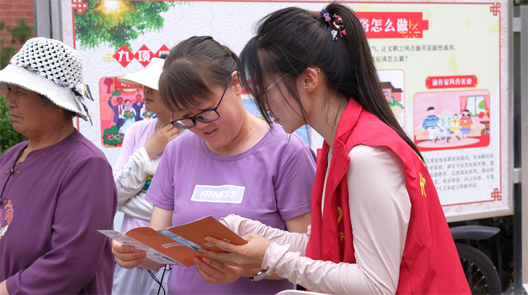 志愿者開(kāi)展移風(fēng)易俗相關(guān)宣傳。(羅瀚 攝)