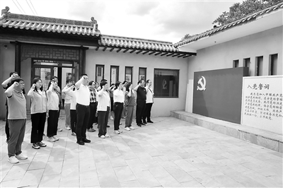近日,山西省紀(jì)委監(jiān)委機關(guān)部分黨員在晉綏八分區(qū)(專署)舊址開展“傳承紅色基因,砥礪初心使命”主題黨日活動。圖為黨員重溫入黨誓詞。王鵬波 攝