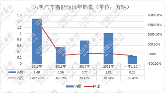 2006年,力帆推出首款轎車力帆520,新車不足5萬元的售價在當(dāng)時引發(fā)關(guān)注,月銷量一度達到5000輛。2013年,力帆年銷售汽車15.34萬輛,成為汽車界的一匹黑馬。然而,好景不長。自2016年開始,力帆汽車進入下行趨勢,目前更是步履維艱。力帆產(chǎn)銷快報顯示,2019年1-10月,力帆傳統(tǒng)乘用車累計銷售2.2萬輛,同比下滑73.5%,10月僅銷售29輛;新能源累計銷售2458輛,同比下降65.42%,10月僅銷售423輛。