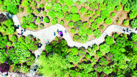 工人呂玉福告訴記者:“牡丹花朵里積存了大量雨水,如果不用繩子將牡丹捆綁,這些牡丹就會(huì)倒伏。”這些10年前栽植的牡丹,如今成為一道壯麗的城市景觀,形成了全長(zhǎng)30公里的牡丹景觀帶。