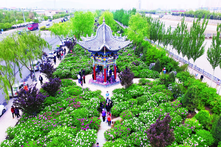 臨夏市濱河路綠化帶內(nèi)牡丹盛開(kāi)
