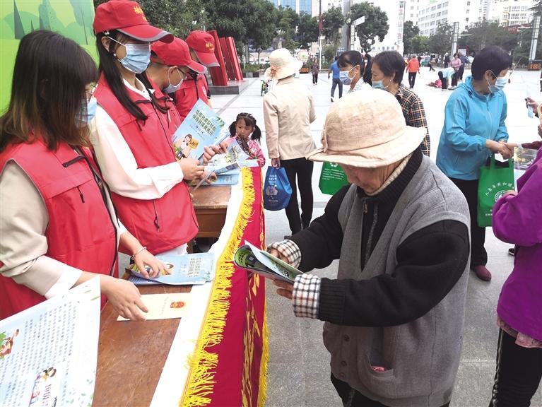 志愿者發(fā)放宣傳資料 楊貴智 攝