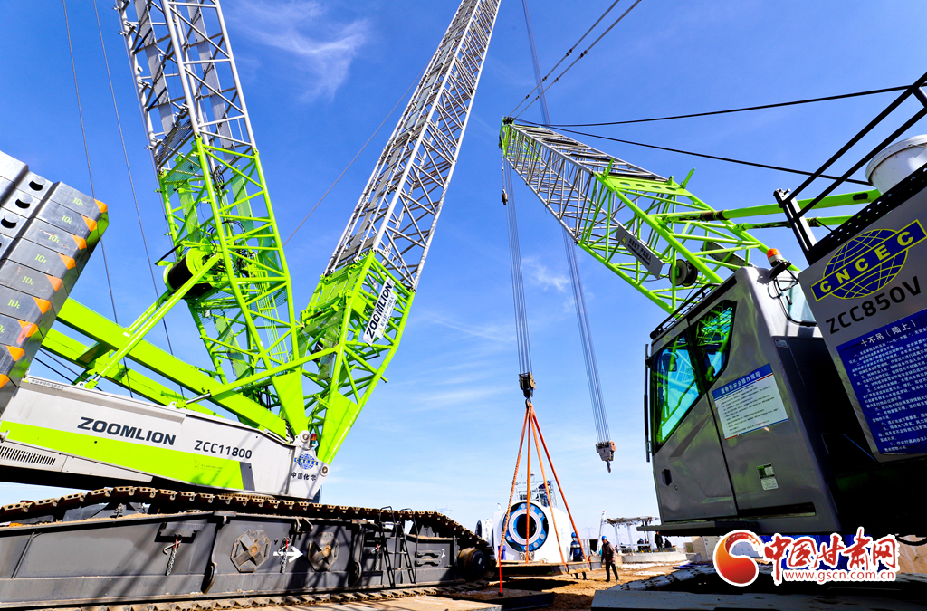 2月21日,張掖市臨澤縣平川北灘30萬千瓦風(fēng)電項目建設(shè)現(xiàn)場,工作人員正在進行主機吊裝。