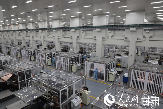 甘肅海亮新能源材料有限公司的生產(chǎn)車(chē)間內(nèi),工人們正在生產(chǎn)線上忙碌。人民網(wǎng)記者 黃帆攝