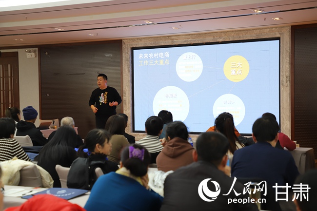 榆中縣農(nóng)產(chǎn)品質(zhì)量安全高素質(zhì)農(nóng)民培訓(xùn)班開(kāi)班授課。人民網(wǎng)記者 黃帆攝