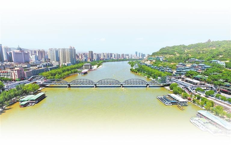 和煦的春風在吹拂,明媚的陽光在照耀。鐵橋五個橋拱的倒影鋪展在河面上,像篦子一樣梳過緩緩流淌的黃河水。子在川上曰:逝者如斯夫。百余年來,黃河水就這樣流淌,而百余年似乎又只是一個瞬間。