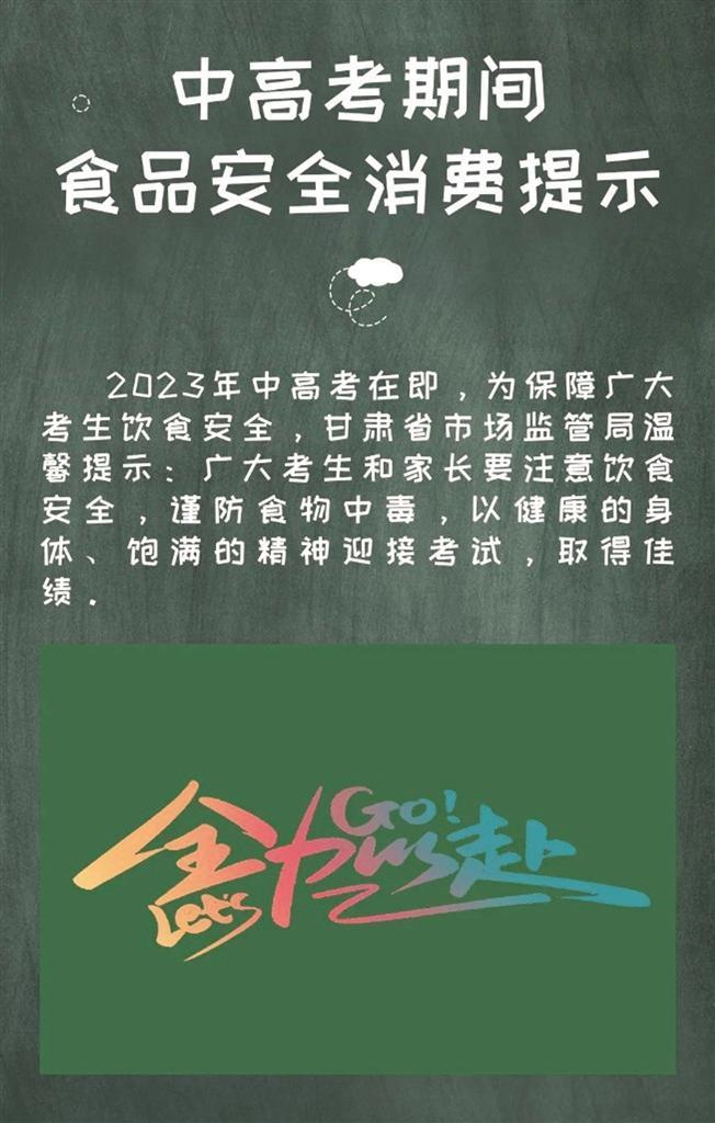 甘肅省市場監(jiān)管局發(fā)布中高考期間食品安全消費提示