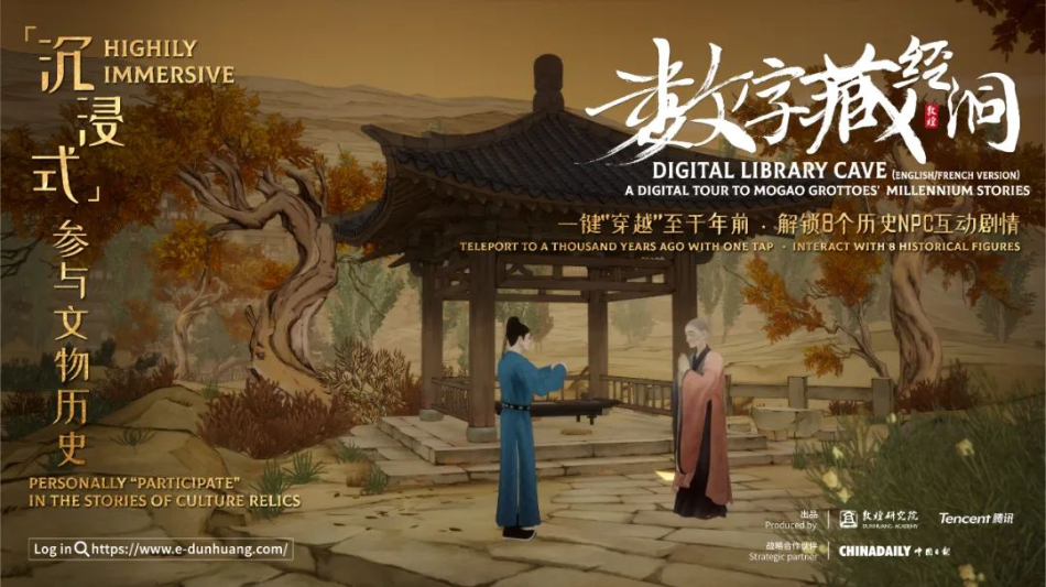 敦煌藏經(jīng)洞是20世紀(jì)最重要的考古大發(fā)現(xiàn)之一,曾出土6萬(wàn)余件古代文獻(xiàn)和藝術(shù)品,被譽(yù)為“打開(kāi)世界中世紀(jì)歷史的鑰匙”?;诓亟?jīng)洞出土文物和敦煌石窟等相關(guān)研究,敦煌學(xué)逐漸成為一門“國(guó)際顯學(xué)”。一直以來(lái),敦煌研究院致力于聯(lián)動(dòng)社會(huì)力量,利用現(xiàn)代數(shù)字技術(shù)推動(dòng)文化遺產(chǎn)數(shù)字化和弘揚(yáng)優(yōu)秀傳統(tǒng)文化。“數(shù)字藏經(jīng)洞(國(guó)際版)”在共建“一帶一路”倡議提出十周年之際率先推出,以“超時(shí)空參與式博物館”這一創(chuàng)新形態(tài),豐富了以往以文化展覽、學(xué)術(shù)論壇等為主的交流體驗(yàn)?zāi)J?,綜合運(yùn)用游戲科技,為海外用戶帶來(lái)全新的文化體驗(yàn)。