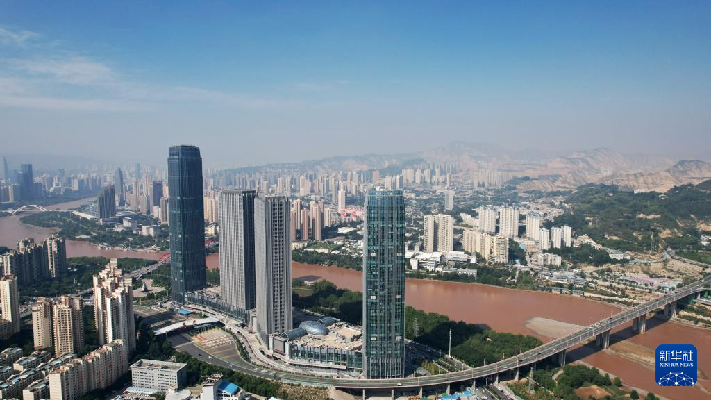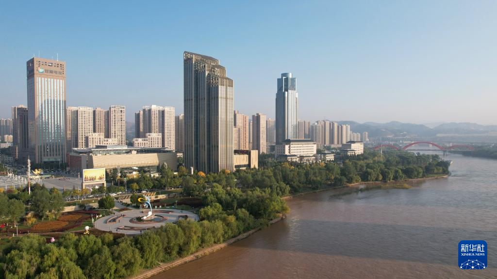 這是蘭州市城關(guān)區(qū)黃河岸邊林立的高樓(9月24日攝,無人機(jī)照片)。新華社記者陳斌攝