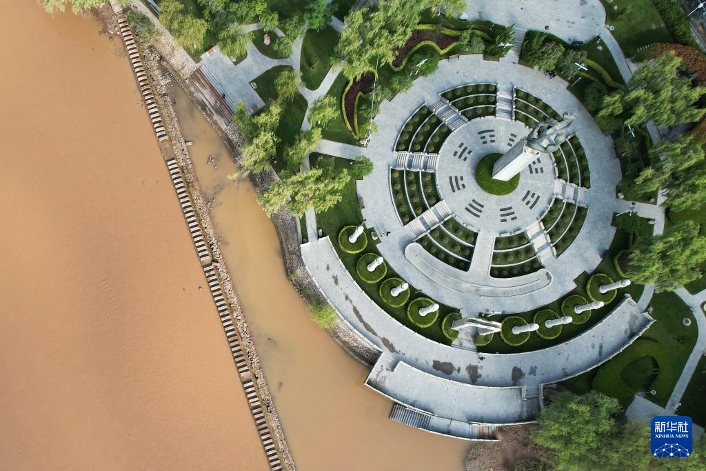 這是位于黃河蘭州段南岸的黃河樓(9月26日攝,無人機(jī)照片)。新華社記者陳斌攝