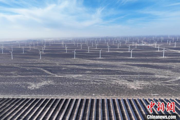 1月6日,航拍甘肅省酒泉市瓜州縣光伏和風(fēng)力發(fā)電項(xiàng)目。李亞龍 攝