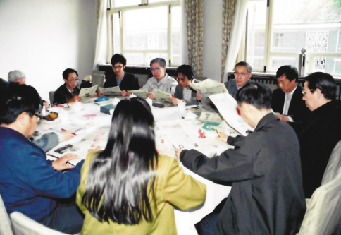 黃鴻森先生(后排左二)上世紀(jì)90年代初作為專家評委,參加由本報(bào)舉辦的全國報(bào)紙編校質(zhì)量抽查評比活動(dòng)。