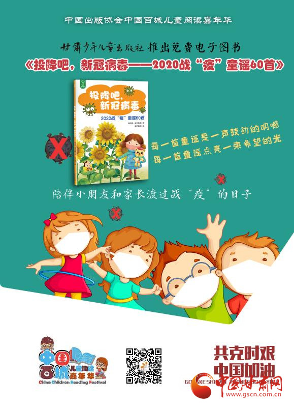 庚子之春,新冠肺炎疫情爆發(fā),全國人民奮力投身到這場疫情防控阻擊戰(zhàn)中,孩子們、兒童文學作家也紛紛創(chuàng)作了大量優(yōu)秀的童謠。2月份,讀者出版集團旗下甘肅少年兒童出版社(以下簡稱:甘肅少兒社),策劃上線了免費公益數(shù)字出版物《投降吧,新冠病毒——2020戰(zhàn)“疫”童謠60首》。書中收錄60首優(yōu)秀童謠作品,對兒童進行防疫科普宣傳,以期提高兒童科學防護意識和戰(zhàn)勝病毒的信心。一首首童謠匯集起來,架起了孩子和家長共同抗疫的橋梁,也點亮了孩子們用稚嫩的眼光和思維認識這場災難的微光。