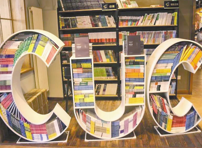 圖書被碼成中國傳媒大學的校標形狀,這成為中傳知行書店的一處閱讀風景。