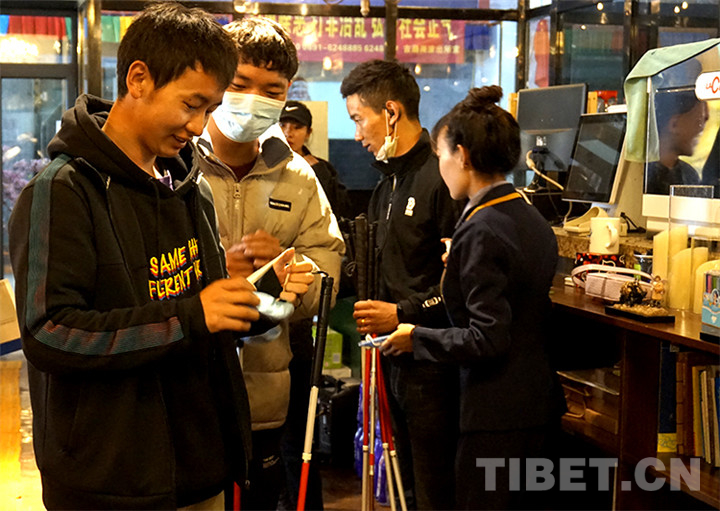 戴上眼罩,手拿盲杖,跟隨引領(lǐng)者,次旺多吉跟隨10余名讀者一起走進了黑暗世界。“黑暗體驗后,我更加了解了視障群體。他們雖然看不見,但通過聽覺、嗅覺等也能感知這個世界。”次旺多吉同時說,經(jīng)過這次體驗,他也要在生活中盡自己的力量幫助視障人士,給予他們更多關(guān)愛。