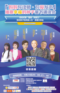 在國(guó)家新聞出版署指導(dǎo)下,由中國(guó)新聞出版?zhèn)髅郊瘓F(tuán)、首都圖書(shū)館聯(lián)合央視頻、騰訊新聞、喜馬拉雅、云聽(tīng)、當(dāng)當(dāng)網(wǎng)、未來(lái)網(wǎng)、快手等平臺(tái)主辦的“媽媽導(dǎo)讀師·為愛(ài)發(fā)聲”播撒幸福的種子童書(shū)誦讀會(huì)在世界讀書(shū)日當(dāng)天啟動(dòng),啟動(dòng)式以“提高閱讀力,規(guī)劃孩子的閱讀人生”直播分享會(huì)的形式進(jìn)行。分享會(huì)上,嘉賓們圍繞“讀什么、怎么讀、讀懂書(shū)、從讀故事到編故事、成為閱讀達(dá)人”5個(gè)話題展開(kāi)討論,希望能夠引導(dǎo)家庭重視親子閱讀,調(diào)動(dòng)兒童閱讀的積極性、培養(yǎng)其閱讀習(xí)慣、教會(huì)其閱讀方法,促使其提高閱讀能力。
