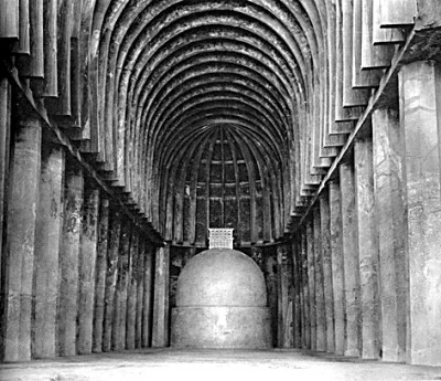 ③印度巴賈石窟12號支提窟內景。來源:《東方建筑》
