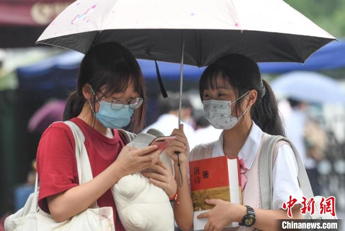 浙江高考結束首日,在杭州學軍中學門口,考生抱著復習資料準備回家?!⊥鮿偂z