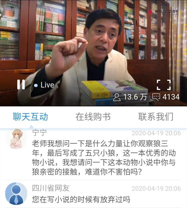 時間的指針再往回?fù)?,此前,作家沈石溪開啟直播形式的線上課程,累計(jì)有超過14萬人觀看,當(dāng)天他的作品《狼王夢》賣出1萬多冊,碼洋超過30萬元。