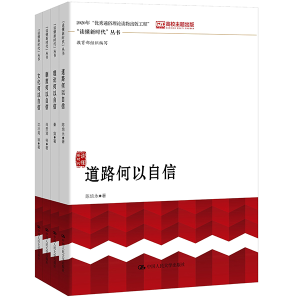 本套叢書是教育部慶祝建黨百年行動理論研究專項重大成果之一,入選國家新聞出版署2020年“優(yōu)秀通俗理論讀物出版工程”、教育部全國高校出版社主題出版選題,為教育系統(tǒng)“加強‘四史’學(xué)習(xí)研究教育攻堅行動”特別是黨史學(xué)習(xí)教育提供了學(xué)習(xí)教材。其中,《道路何以自信》作者為北京大學(xué)陳培永研究員,《理論何以自信》作者為中國人民大學(xué)秦宣教授,《制度何以自信》作者為清華大學(xué)肖貴清教授,《文化何以自信》作者為武漢大學(xué)沈壯海教授。