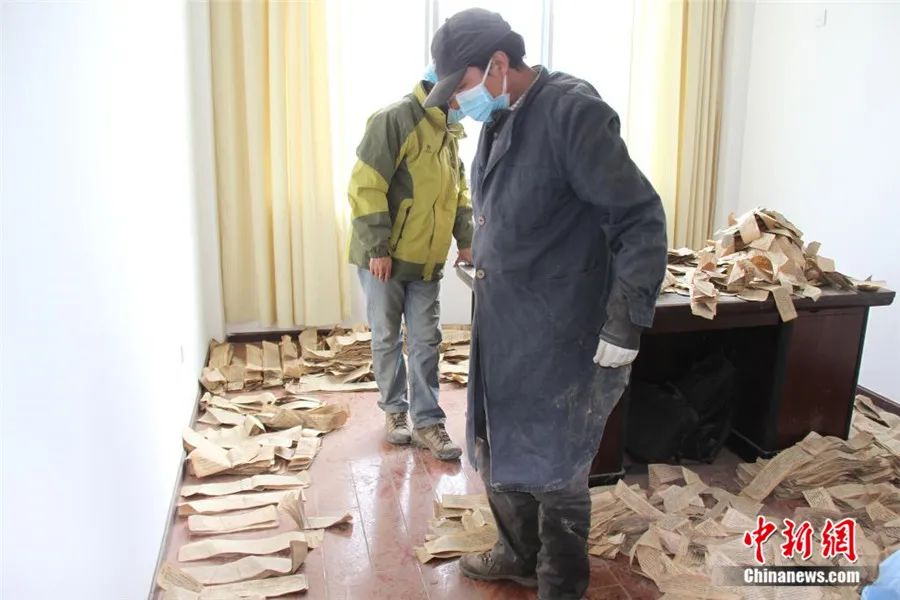 挖掘工作持續(xù)了3天才結(jié)束。由于當(dāng)時(shí)寺院條件簡陋,古籍散葉被臨時(shí)裝入編織袋中,足足裝滿了68袋。