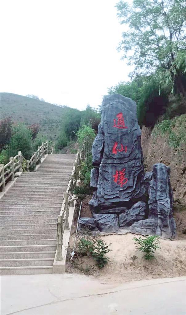 一條羊腸小道蜿蜒了千年,承載了無數(shù)游覽者匆匆的步履,在人們無數(shù)次的暢想中,化成了一條金光大道,讓老人、孩童和物資可直達寺窟門外。醒目的“通仙梯”石刻指引人們沿著游步道拾級而上,領(lǐng)略綠樹掩映、曲徑通幽的絕好勝景,金黃的葉子在濃密的綠葉間格外鮮亮,松樹和柏樹你擠著我,我挨著你,密密匝匝,在五月的陽光和微風中,吟唱著生命的贊歌。白色槐花香氣馥郁,紅色槐花鮮艷奪目,它們從高高的枝頭垂下來,或從山崖斜伸而出,或與游人摩肩而過,或者親呢的撫摸一下游人的笑臉。掩映綠樹中的亭子,是一道絕好的景觀,讓人產(chǎn)生一種遐想和逗留的念想。亭子旁叫不出名的小鳥輕盈的飛舞和歡快的鳴叫,增添了一種活潑美妙的情趣。這情趣給花樹、亭子帶來一種靈性,頻添了無限韻味和妙趣。