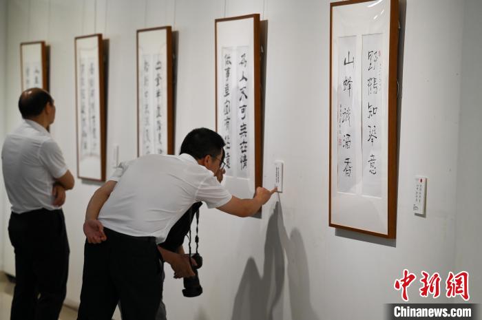 圖為觀眾參觀書法展?!『闻罾?nbsp;攝