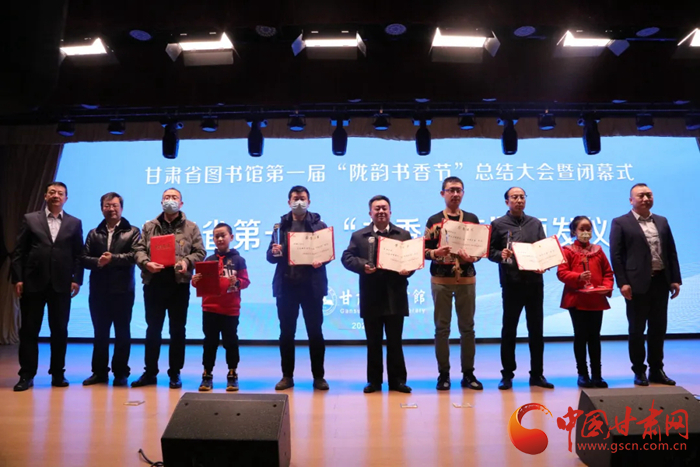 中國甘肅網(wǎng)12月28日訊(本網(wǎng)記者 張?zhí)m琴 通訊員 吳鵬)12月27日,歷時8個月的甘肅省圖書館第一屆隴韻書香節(jié)圓滿落幕。閉幕儀式上播放了第一屆“隴韻書香節(jié)”活動總結(jié)短片和書香家庭宣傳短片,公布了“隴韻書香節(jié)”形象標(biāo)識(LOGO)方案,并為“甘肅省第一屆書香家庭”獲得者、“紅色經(jīng)典閱讀 點(diǎn)亮愛黨紅心”活動獲獎?wù)哳C獎。