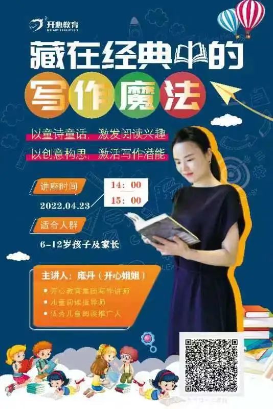 書香潤校園·一堂開心讀寫魔法課,以童詩童話,激活孩子的閱讀興趣以創(chuàng)意構思,激活孩子的寫作潛能快來掃碼預約直播吧。