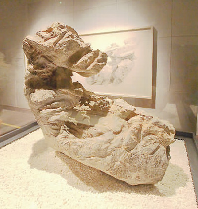 展廳中一塊奇石吸引了記者的目光。王子林介紹,此石為靈璧石,因石“如天風遏云抱崖綺布之勢”,取酈道元《水經注》中“造云壁立”而命名,“造云”二字刻于石額間。造云石原為元代蘇州玉山草堂主人顧瑛所藏,石上題刻記述了元至正十年(1350年)秋以賞石為主題的雅集盛事。此石后來進入紫禁城,陳設于建福宮惠風亭西北隅。
