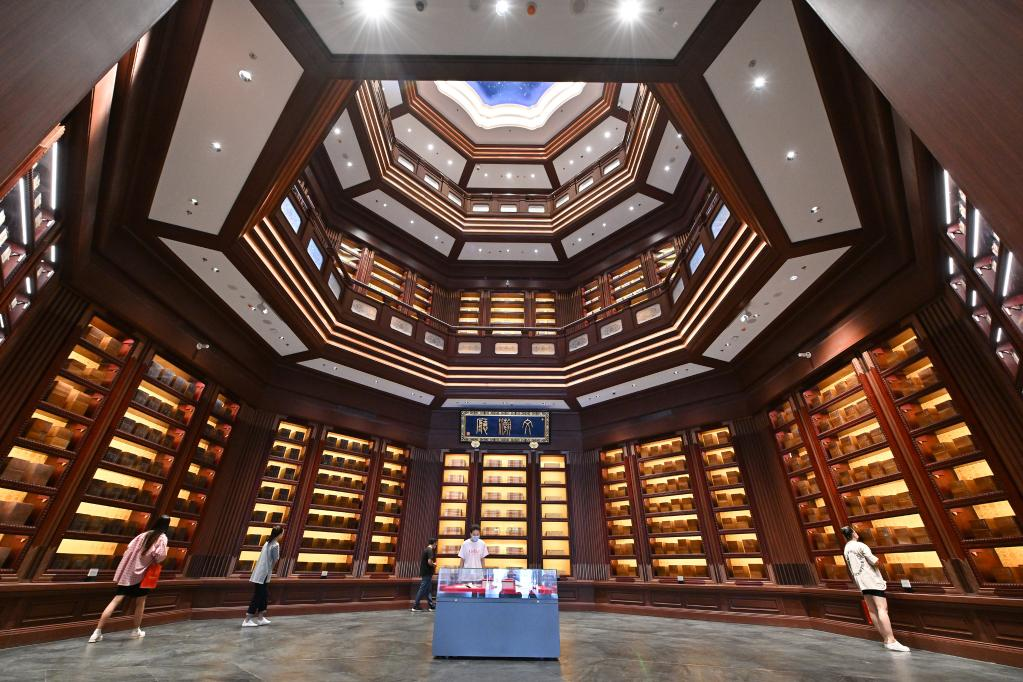 2022年7月30日,觀眾在中國(guó)國(guó)家版本館中央總館文瀚廳內(nèi)參觀。中國(guó)國(guó)家版本館是國(guó)家版本資源總庫和中華文化種子基因庫,由中央總館文瀚閣、西安分館文濟(jì)閣、杭州分館文潤(rùn)閣、廣州分館文沁閣組成,歷時(shí)三年建設(shè),全面履行國(guó)家版本資源保藏傳承的職責(zé)。