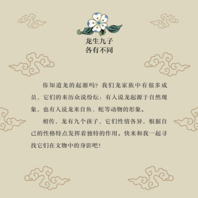 想到這,帶著滿滿自信的如意背起時(shí)光寶盒,興奮地去找其他小朋友,要給大家一起分享關(guān)于龍族祖先們與瑰麗國(guó)寶的故事……
