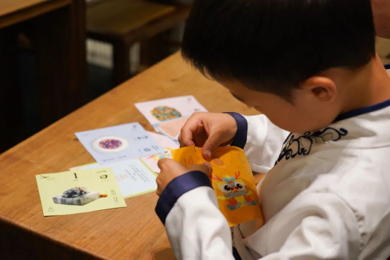 每個(gè)龍文物故事上方,也印有當(dāng)天文物的小圖,它周圍伴有一圈半圓打孔的攏線。如意用小手沿著攏線輕輕一摳,一片小小的“龍鱗”就落在了手心。原來,它就是今天的“成長(zhǎng)值”啊。