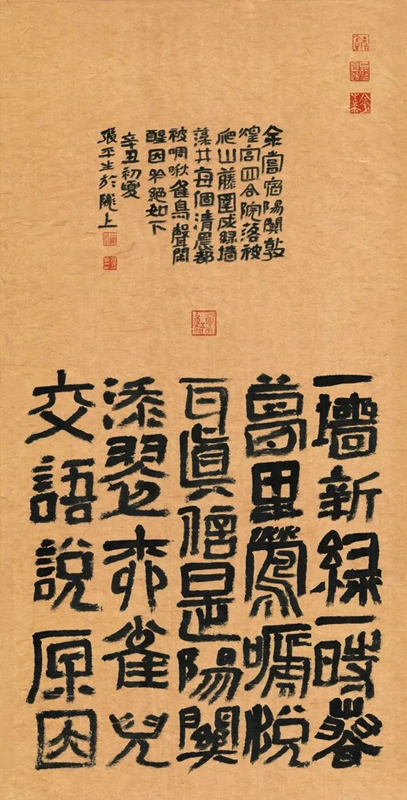 張平生是“詩人中的書法家,是書法家中的詩人”,是真正實現(xiàn)“我筆寫我文”的為數(shù)不多的“藝文兼?zhèn)?rdquo;型書法家。他的的書法,充分發(fā)揮“二爨”優(yōu)勢,上溯漢碑簡牘,把三者的風(fēng)格重新優(yōu)化組合,生發(fā)出新的系列,活化了“二爨”在當(dāng)代的創(chuàng)作形態(tài),獲得廣泛贊譽。