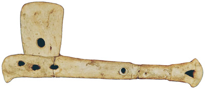 一件有柄穿孔陶斧引發(fā)關(guān)注。它由泥質(zhì)紅陶制成,分柄和穿孔斧兩部分,柄為橢圓形棒狀,前粗后細,前端翹起,有淺槽可嵌入穿孔斧。槽后有三孔,可穿繩縛住穿孔斧,使其固定在槽內(nèi)。柄后端作半月形,并有三角形穿孔。這件有柄陶斧雖非實用工具,但為當時穿孔石斧的裝柄方法提供了實物證據(jù),讓我們能想象它的功能。陶器基本是素色,器類齊備、器形多樣,鼎、鬶、缽、杯、盆、瓶、壺、豆等應(yīng)有盡有。有的夾砂陶中摻雜有蚌殼粉末,體現(xiàn)水鄉(xiāng)地域特點。青墩陶器造型穩(wěn)重、優(yōu)美,線條簡練而充滿動感,顯示出史前青墩人對于生活的感受。