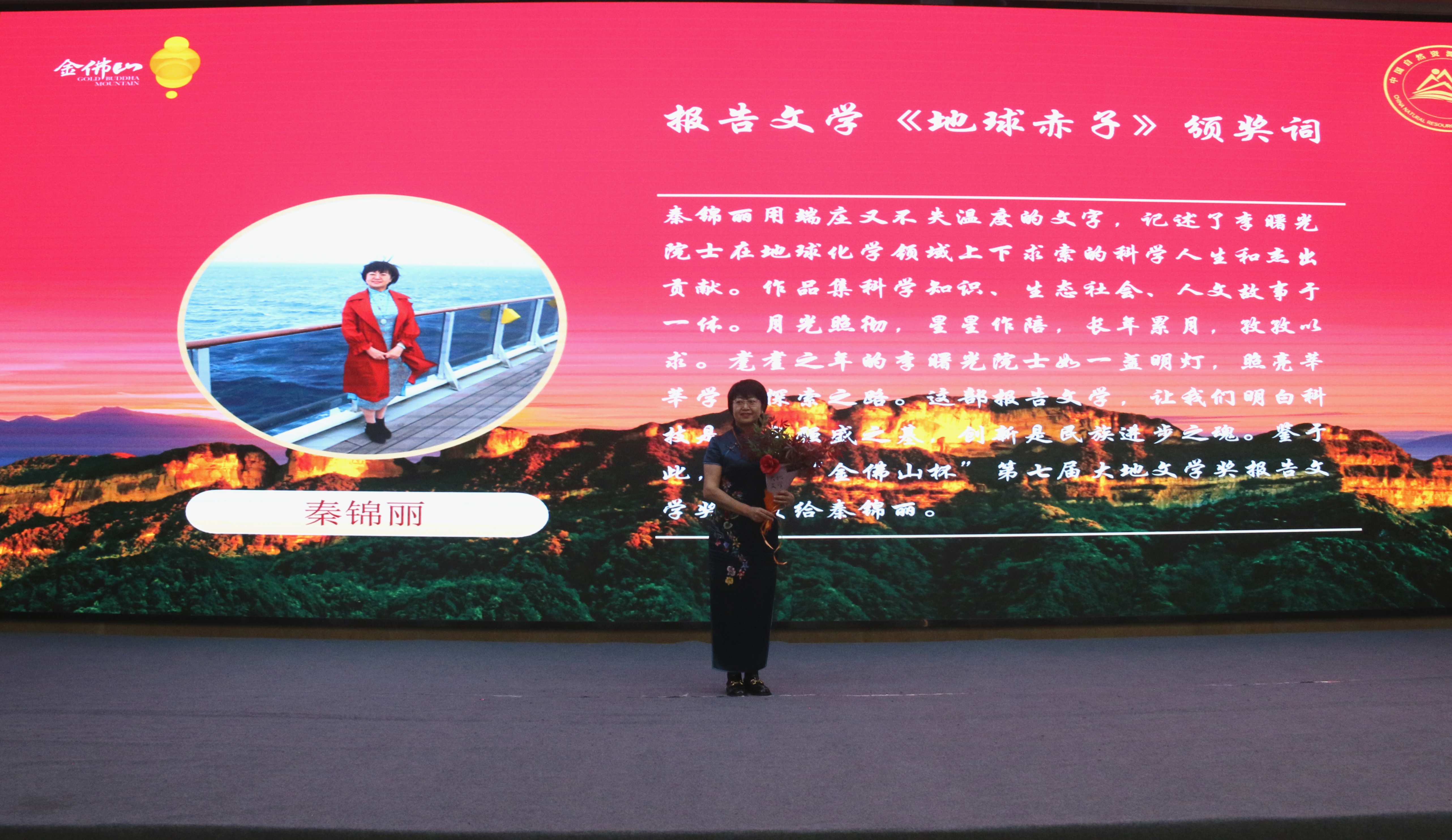 中國甘肅網(wǎng)4月28日訊 4月25日,“金佛山杯”第七屆大地文學獎頒獎暨金佛山中國自然生態(tài)文學創(chuàng)作基地授牌儀式在重慶市南川區(qū)舉行。甘肅作家秦錦麗獲“金佛山杯”第七屆大地文學獎報告文學獎。