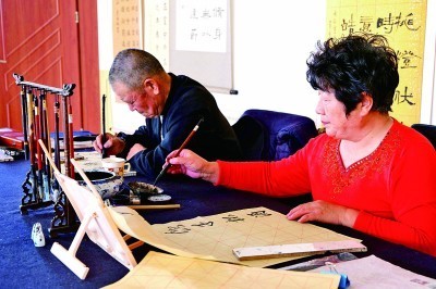 市民在社區(qū)文化中心練習(xí)書法。光明日報(bào)記者 郭俊鋒攝