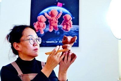 內(nèi)斂安靜的“有愚”、長發(fā)飄飄的“九曲”、瞪眼齜牙的“八怪”、貌如蓮花的“鰱喜”……色如行云,線走流水,形貌精美,黃河的故事被魯婷巧妙繪制在不起眼的黃河石上,成為一件件惟妙惟肖的藝術(shù)佳作。