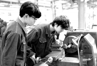 陜西工業(yè)職業(yè)技術學院學生在企業(yè)進行實訓。王正攝/光明圖片