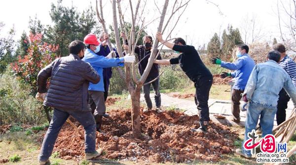 合力扶苗、揮鍬填土、踩實壓緊、提桶澆水……3月10日,在湖南省武岡市荷塘村義務(wù)植樹基地,黨員群眾分工協(xié)作、相互配合,每個環(huán)節(jié)都一絲不茍。經(jīng)過一上午的忙碌, 一棵棵櫻花樹迎風挺立,把山頭裝點得綠意盎然。今年,武岡繼續(xù)啟動55個美麗鄉(xiāng)村綠化美化建設(shè),繼續(xù)改善城鄉(xiāng)環(huán)境,提高人民群眾的獲得感和幸福感,為爭創(chuàng)省級森林城市“添磚加瓦”。