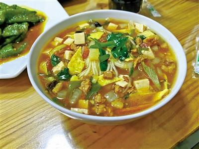 澆頭很“田園”,勾芡不厚不薄,恰到好處,故而色澤鮮亮;用料實(shí)在,五花肉丁、豆腐丁、洋芋丁、胡蘿卜丁、黃花菜、黑木耳品種豐富,一絲不茍;面條半個(gè)筷頭粗細(xì),微黃半透,勻稱筋道,久泡不爛;佐以熗拌水蘿卜、蒜泥茄子,真的是香濃滑爽,吃完令人毛孔大張,微微汗溢。