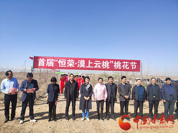 中國甘肅網(wǎng)4月25日訊(本網(wǎng)記者 張振國 文/圖)人間四月芳菲盡,大漠桃花始盛開。4月25日,騰格里沙漠邊緣、涼州大漠桃花即將開放之際,由甘肅恒榮綠洲治沙科技有限公司舉辦的首屆“恒榮·漠上云桃”桃花節(jié)在涼州區(qū)紅水河西該公司生態(tài)經(jīng)濟(jì)林產(chǎn)業(yè)化經(jīng)營試驗(yàn)基地“恒榮桃園”開幕。