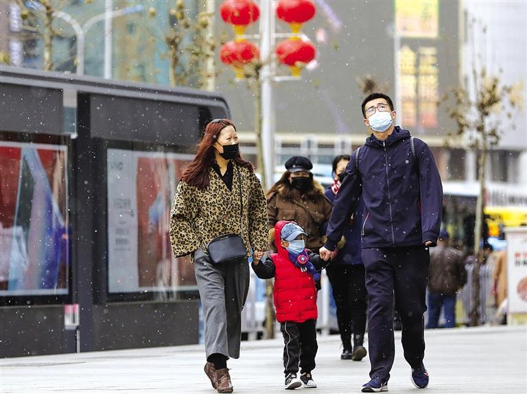 2月28日我市出現(xiàn)降雪天氣,雪花飄落,氣溫也隨之下降,最低氣溫降至-4℃。 記者 馬軍 攝