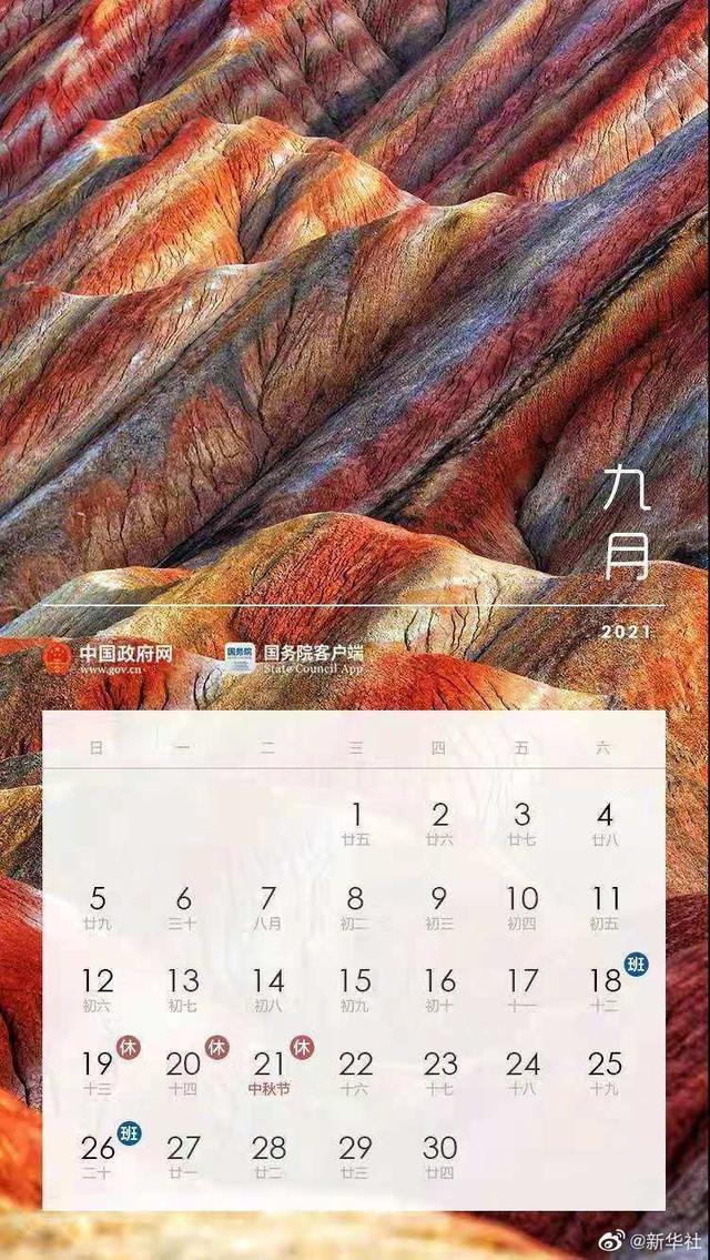 中秋節(jié):9月19日至21日放假調休,共3天。9月18日(星期六)上班。